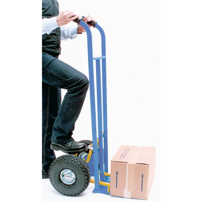 Hand truck with straight backrest ideal for bulky crates, parcels or boxes.