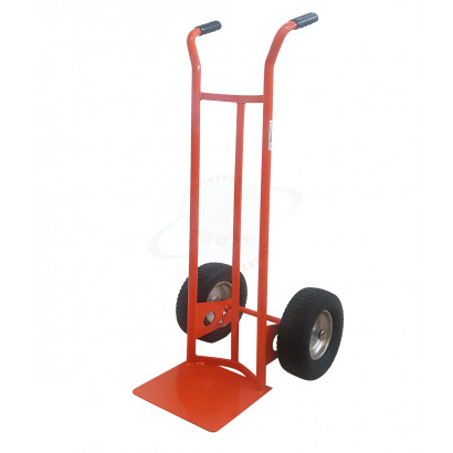 Hand truck with curved backrest ideal for holding bags, drums and soft materials.