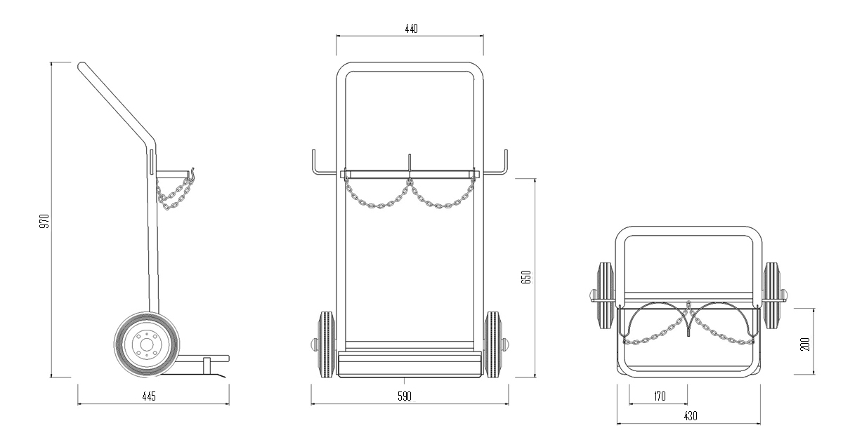 Utilizzato per assicurare il trasporto di bombole di gas da 14 litri grazie alle catene evitandone così la caduta accidentale.