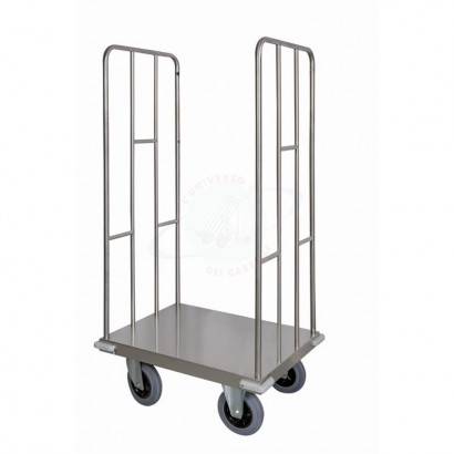 Le ruote in gomma grigia antitraccia ad alta scorrevolezza e di grande diametro permettono di superare agevolmente carichi considerevoli su superfici non perfettamente levigate. Il carrello è ideale per l'impiego in ambienti umidi come lavanderie e in tutte quelle situazioni dove sia necessario trasportare in sicurezza carichi voluminosi e gravosi. Il piano di appoggio è in lamiera liscia ad alto spessore in grado di sopportare carichi elevati.
